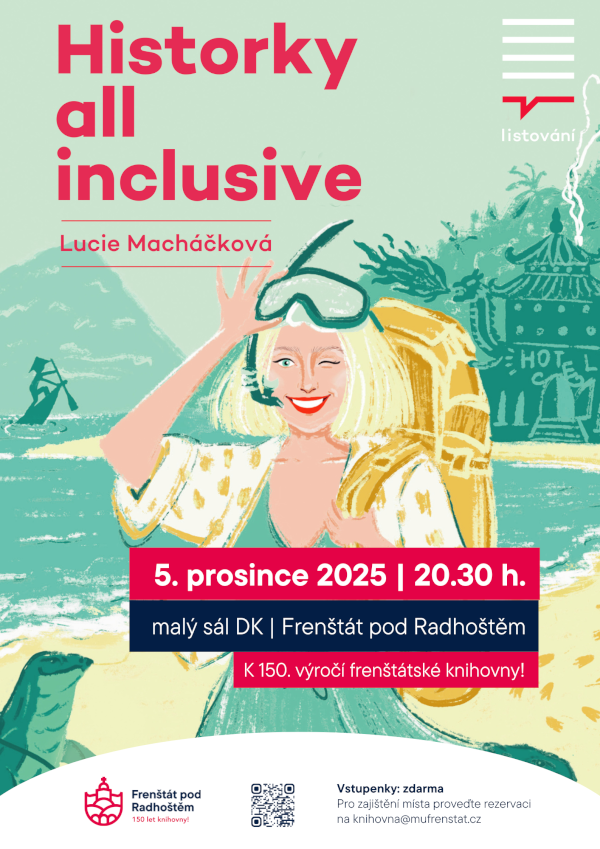 - Vstupné: 290 Kč / Prodej v TIC Frenštát p. R., knihovně nebo online