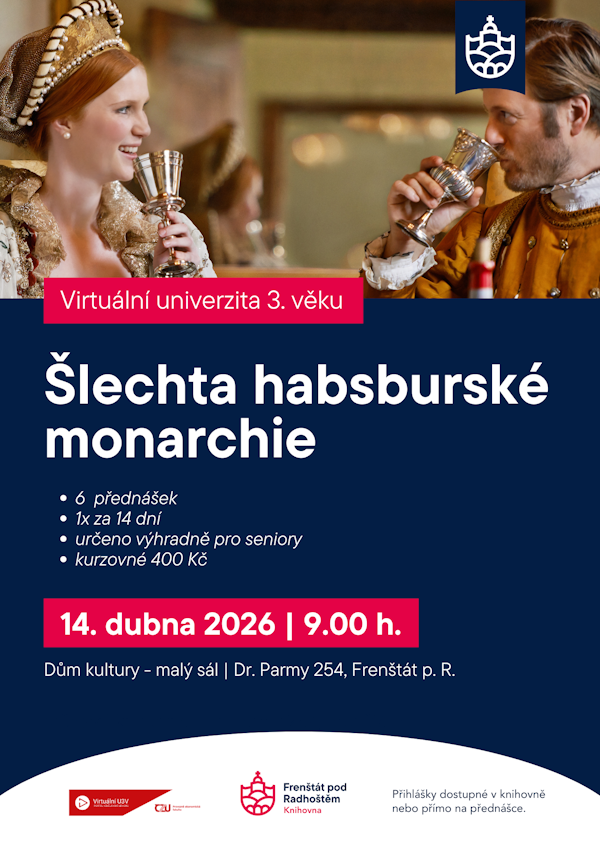 - Vstupné: 200 Kč / rezervace míst na knihovna@mufrenstat.cz